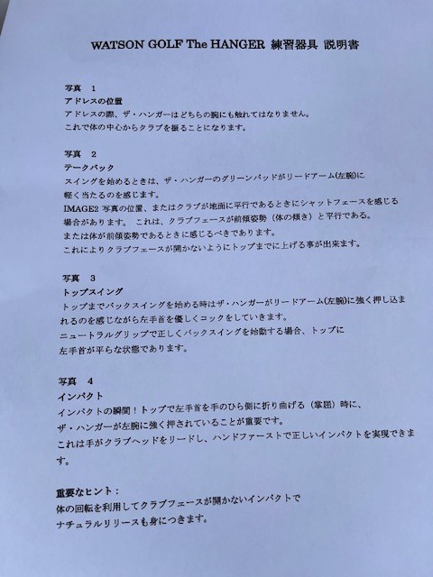 で、この前、その名の通り、ハンガードリルをするための練習器具「the HANGER」を大ベテランの先生がどこからか持ってきて、レッスンで使わせてもらって、スイングしてみると意識できるのです・・・左手の内側に練習器具が触っている感じが、ダウンスイングでもこのスイングの型と角度がKeepできているかどうかが|ョ゚Д゚ ))キタコレ