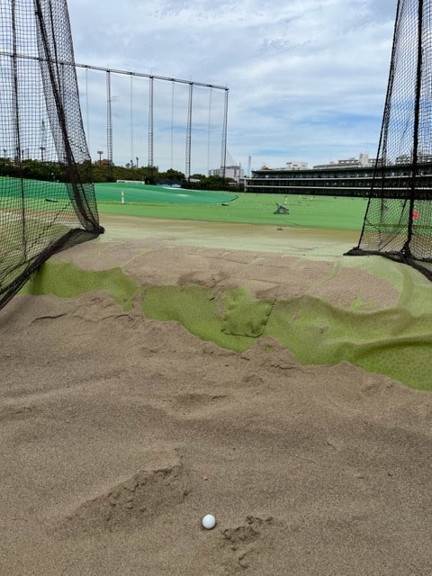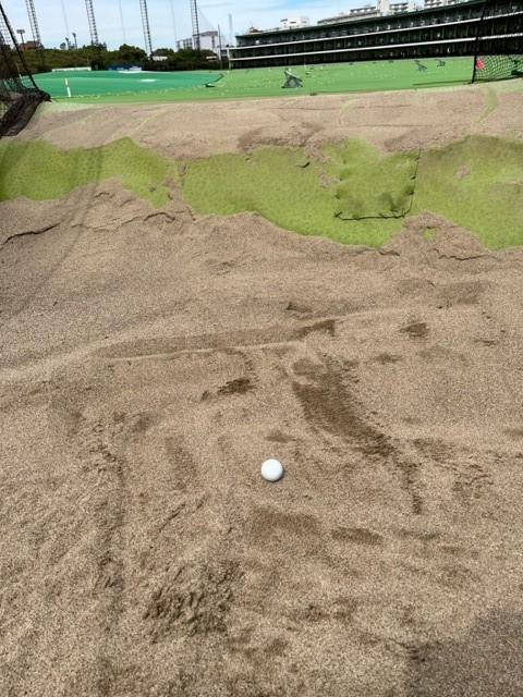 ダフるのではなく、9番アイアンでひたすらゴルフボールの前(写真左)の砂をとる練習をしていたそうで、バンカー用語(うんな用語あるかーい( ´Д)=○)3´)・∵.ドガッ)でいうとひたすら「ホームラン」と言われるボールを、目の前のロッテ葛西ゴルフのだだっ広い練習場のコースに遠慮なく・・・・Ootani-Saaaaaan, See Yaとメジャーリーグエンゼルスばりの実況がついたかどうかは知りませんが・・・「ホームラン」を打ち込み続けたそうなのです 工工エエェェ∑(;゚Д゚ノ|