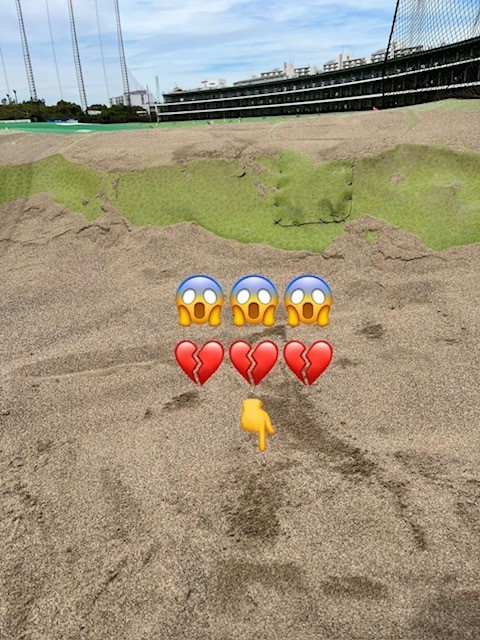 全然ボールの前の砂をとるどころか、うしろの砂がえぐれとるやないかぁーーーーー──(゚Д゚; )→ グサッ!!