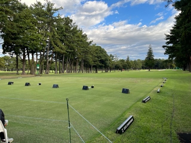 そわそわしながら歩いては、とにかく朝の練習を見たくて、練習場に行こうと思うも、着いたのが7時前だったので、まだコースの整備してるとのことで10分ほど列に並んで待って、7時になるやいなや、ちょっと小走りでドライビングレンジまでやってきてぇーーー(=゚ω゚)ノ