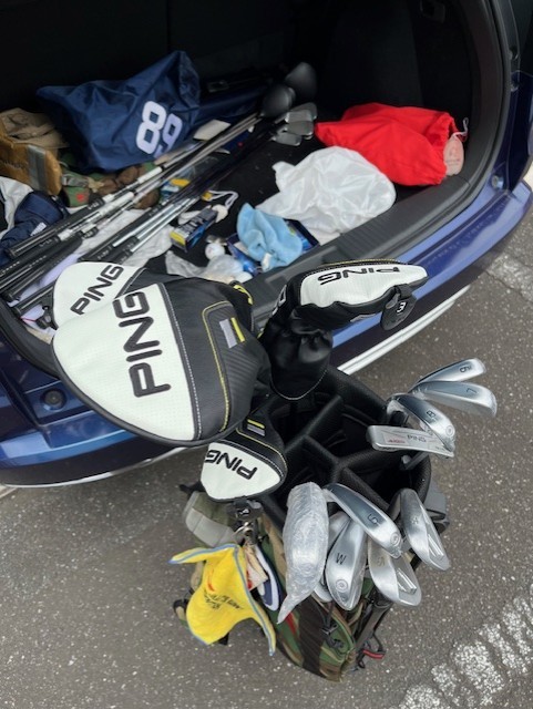 いやーーー、受け取った時のままだからまだクラブにシールがまかれたままだ、おにゅー感、半端ねーーーーーー、きゃーーーーーー最高ーーーーヽ( ´3`)ノ・・・って相変わらず、俺の車の荷台、おきたないな・・・12年使った古いクラブもまだ処分していないし・・・イジイジ( ´-ω-)σ@