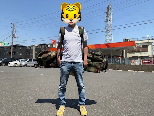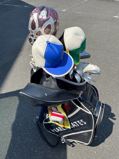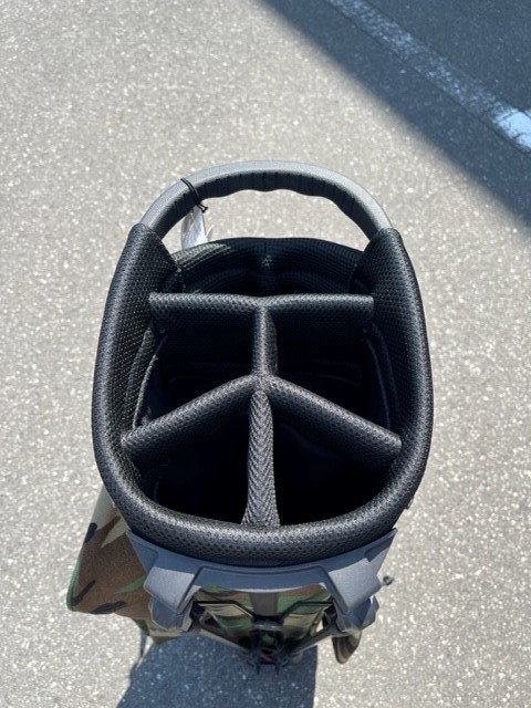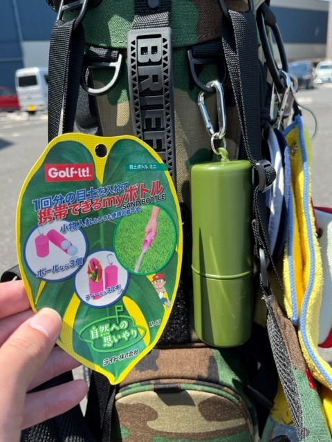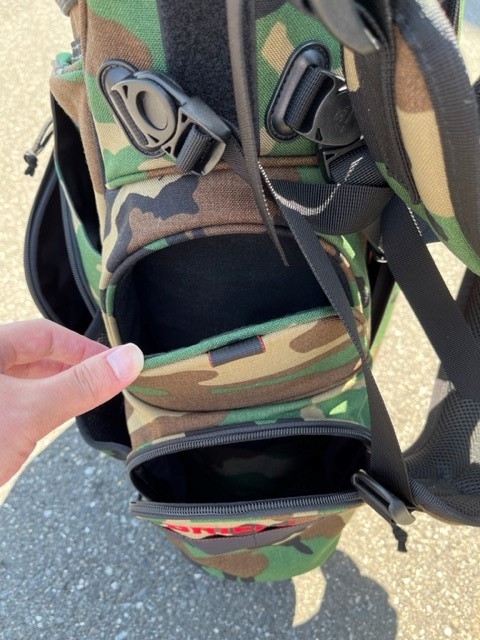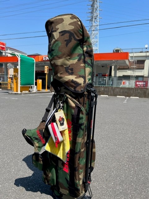 実際のラウンドする時はフードカバー外してまわるだろうから、外してかつぎ直してみようΣ(・ω・ノ)ノ!( *´艸`)(/ω\)あ、ハサミ持ってくるの忘れたからまだ値札がついてる(/ω\)