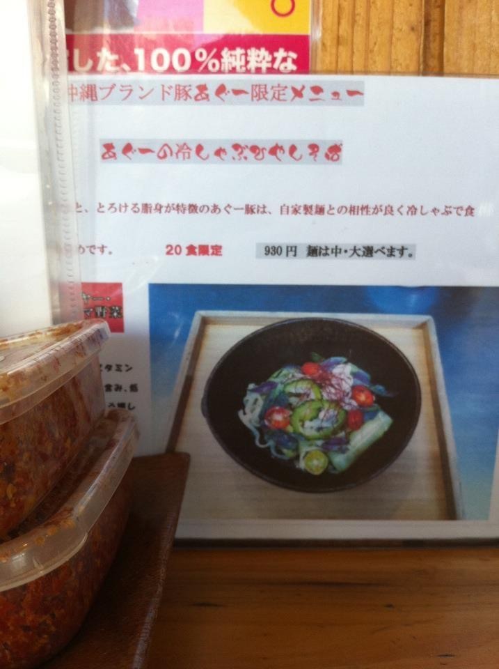 が、しかし・・・・出会いがあれば別れがあるのが人生のように、ある日、お店に行ったら、おばちゃんから「もう、あぐーの冷しゃぶひやしそばはやめちゃったのよーーー」と衝撃の告白を受けて、しばらく立ち直れなかったのを覚えてます、どうやらこのおそば作るのめちゃくちゃ手間がかかるっぽくて・・・・そりゃーーーー、あれだけうまいそば作るには手がかかるよな・・・・でも続けて欲しかったなーーーと失意のどん底に落とされたのを昨日のように思い出せます _| ̄|○ ガク _ノフ○ グッタリ _| ̄|● ガックリ