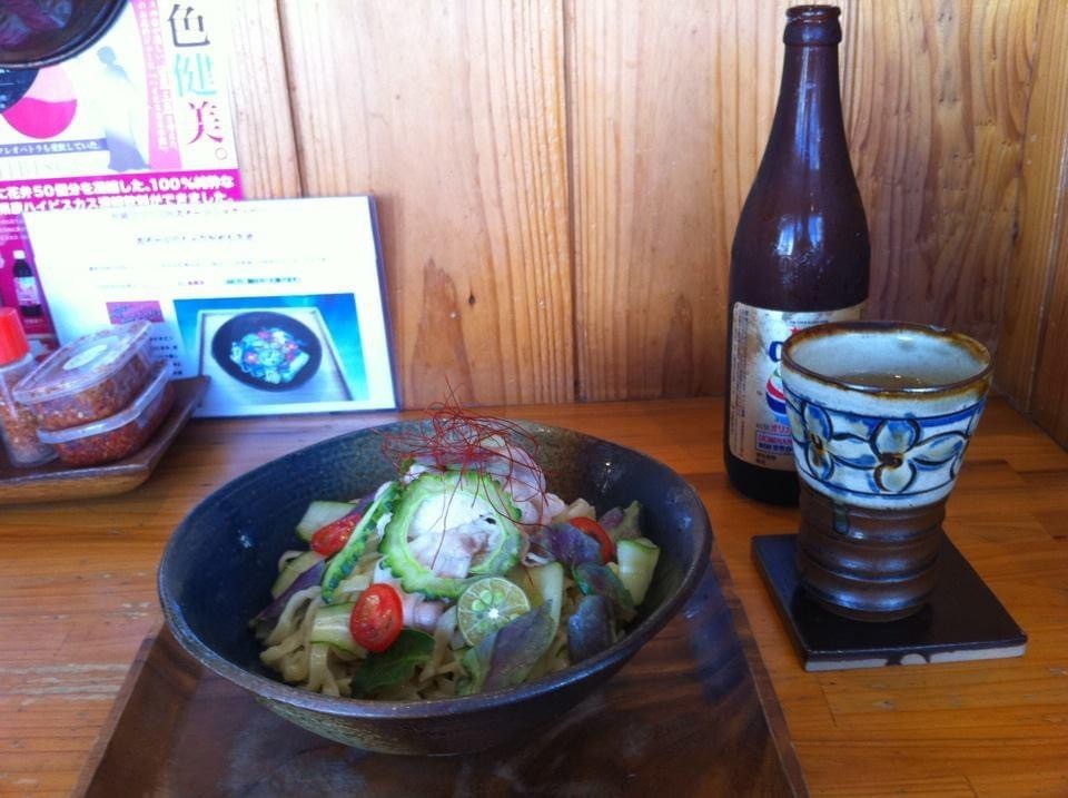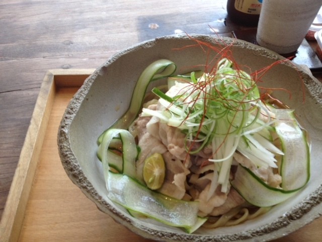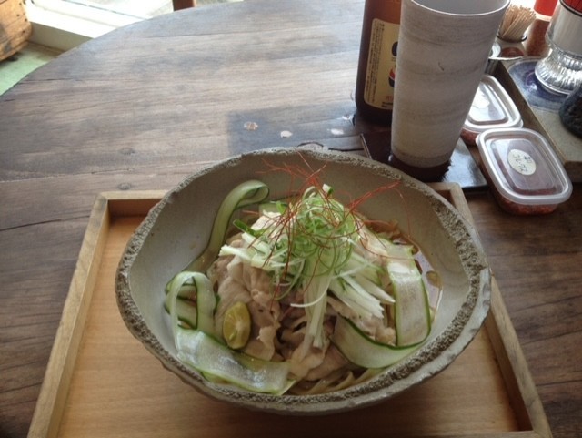 一日限定20食なので、開店5分前ぐらいにお店に行って、開店とともにこの「あぐーの冷しゃぶひやしそば」とオリオンビールを頼んで、もうこのひやしそばがメニューに出ている間は、大袈裟ではなく土曜日と日曜日のランチ、両日これを食べて、週末が来るたびに同じことしてたら、お店のおばちゃんに覚えられてしまって「いつものやつとオリオンビールね」と言われる状態にまでに(-∀-)ゞエヘヘ