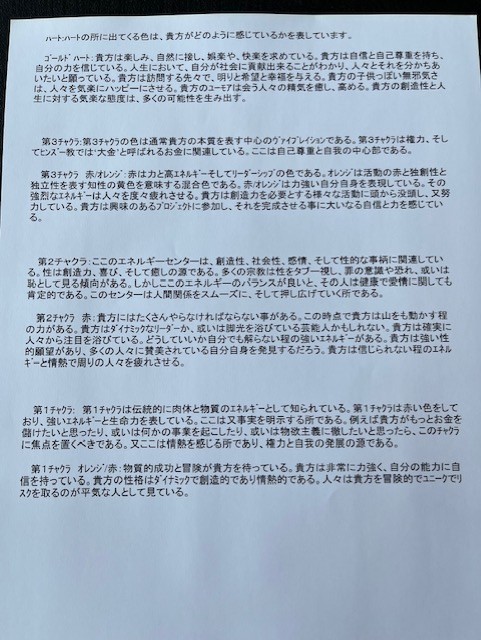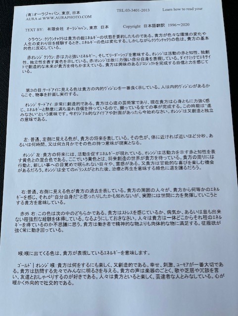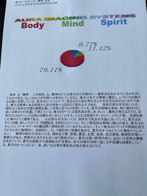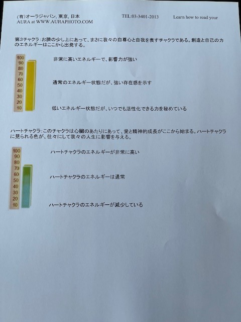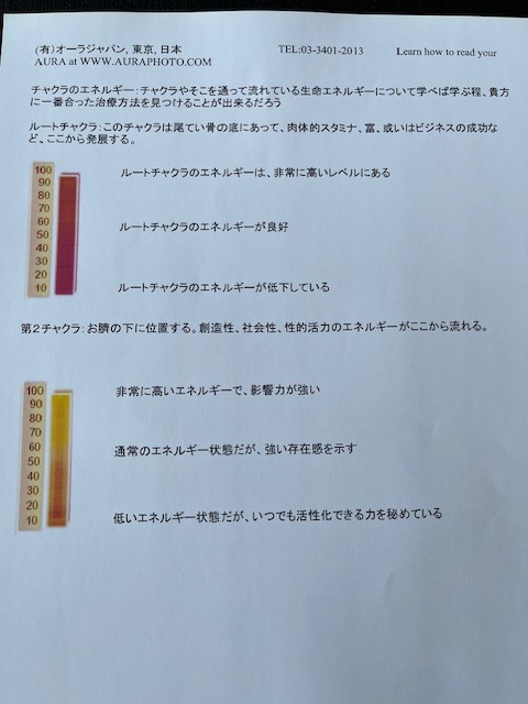 オーラカメラでオーラを撮ってもらって、波動測定器とカメラが撮ってくれたデータをプリントアウトして頂き、そのデータを一つずつ丁寧にご説明頂きました、いやーーーーおもしろかったぁーーーーハンパネェ───∑L(`Д´L)───!!!!