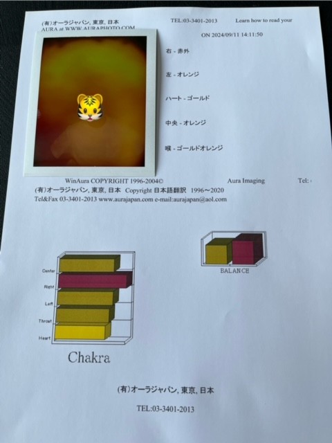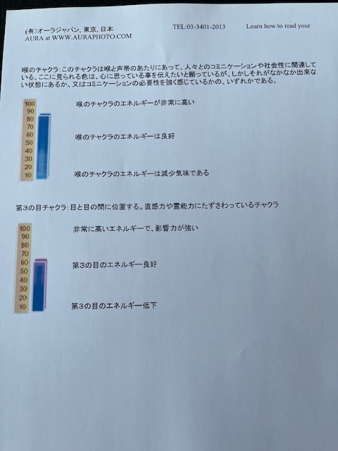 一通り他の方のオーラ写真と寅のオーラ写真を見比べた後に、プリントアウトしたデータを見ると主にチャクラの状態のレポートだったので、それを詳細にお話しくださって、いやーーー面白かったのですが、とりあえず写真貼っておきますので、興味本位で見たい方、見てみてください、自分のチャクラをネットにさらすってちょっと恥ずかしいですが(/ω\)