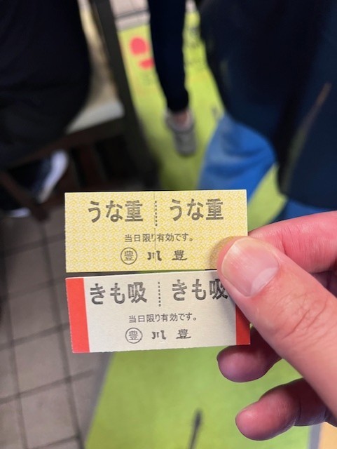 お参りを終えて、表参道を駐車場方向に向けて歩いていくと、ちょうどお昼どきに人だかりができているから、なんだ?と思ったら、うちのアモーレ(妻)がふるさと納税でよく送ってもらっている成田山のうなぎの名店、川豊本店じゃないかぁーーーーーーΣ(・ω・ノ)ノ!