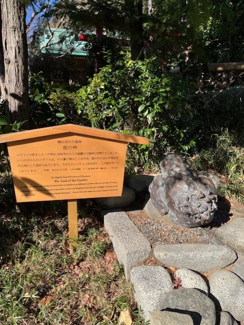 さらに進んで、なにやら庭の神ということでニワトリの銅像なのは、高度なギャグなのか?と思いながらもせっかくなのでありがたく頭なでなでさせていただく <(_ _)><(_ _)><(_ _)>
