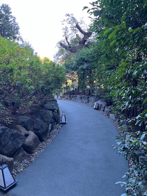 そして、自分は金持ちになったんじゃないかと思いっきり勘違いしてしまうほど高級な空間を抜けて、お庭のエントランスを抜けます ((((oノ´3`)ノ