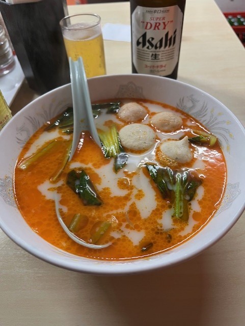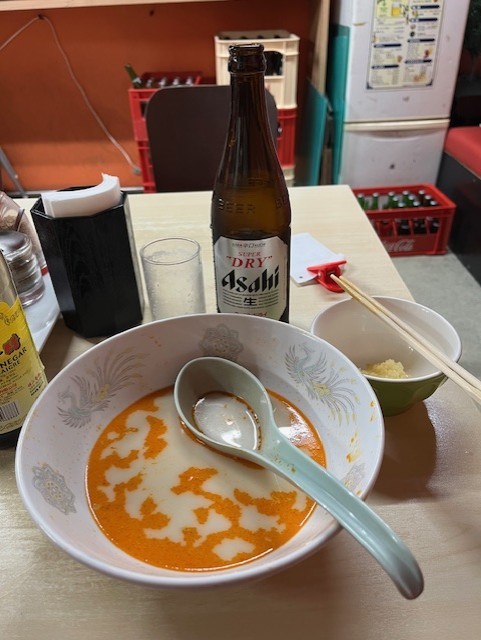 いやー、それにしても待っている人達もいるから、さっさと食べようと思って食べてたら、食べてる途中にお店の人が「辛くないですか?ニンニクか何か調味料いりますか?」と聞いてくれたので、「あ、じゃあ、ニンニクください」とニンニク好きのあなたのかわりに言ってみました (/ω\)